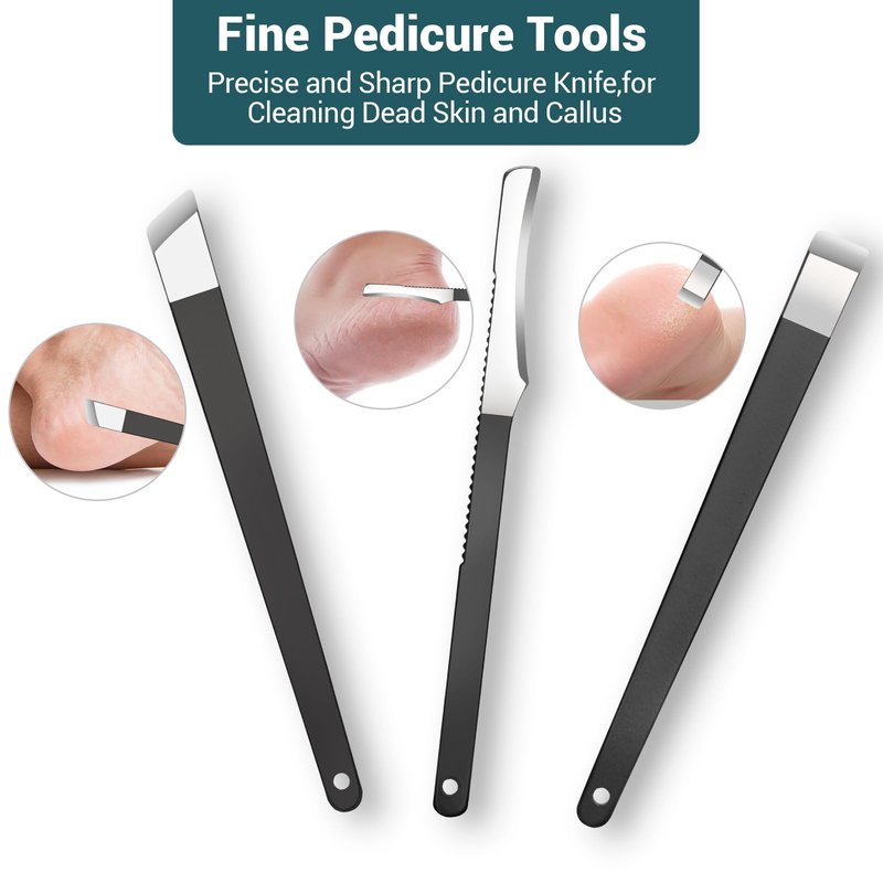 - 【Manicure and Pedicure Kit】 The manicure and pedicure tool set for men and women contains 3 different nail clippers for cutting fingernails or toenails. With nail clippers, file and peeler, dirt cuticle and dead skin around the edges of your nails can be easily cleaned off.