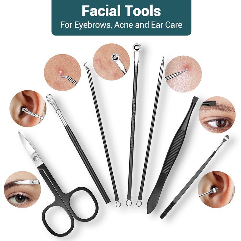 - 【Multi Facial Tools】 The package also comes with 3 facial tool for squeezing acne to ensure hygiene, ear picks and ear spoons to safely clean the ear canals, and eyebrow clippers and clips for efficient eyebrow shaping.