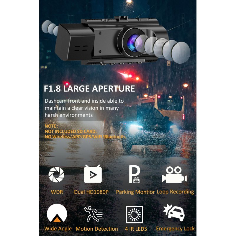 - 【Dual Dash Cam with Super Infrared Night Vision&WDR】With 4 unique infrared LED fill lights,F1.8 aperture and WDR technology,allows the dashcam front and inside to perform optimally in low light situations,ensuring full high-definition recording during the day and night.2.0" LCD Display dashcam that can supports real-time image and replay,helps you see every details clearly.Perfect inside car camera for lyft/uber driver/Taxi/Ridesharing drivers.