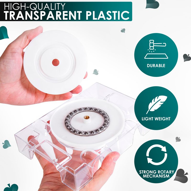 Dual Deck Revolving Card Holder - 360 Degree Poker Playing Cards Holder Canasta Card Holder Casino Accessories Acrylic Playing Card Holder for Playing Card Games - Clear Tray Poker Card Deck Holder