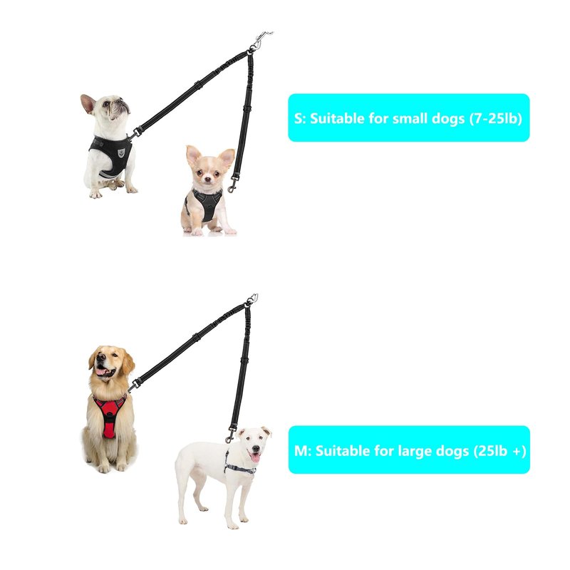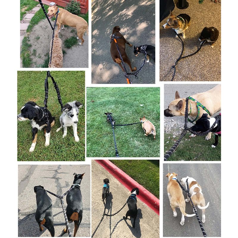 - Elastic Dog Leash: Double dog leash with elastic design. Limiting your dog's range of motion and cushioning can reduce unnecessary injuries during use.