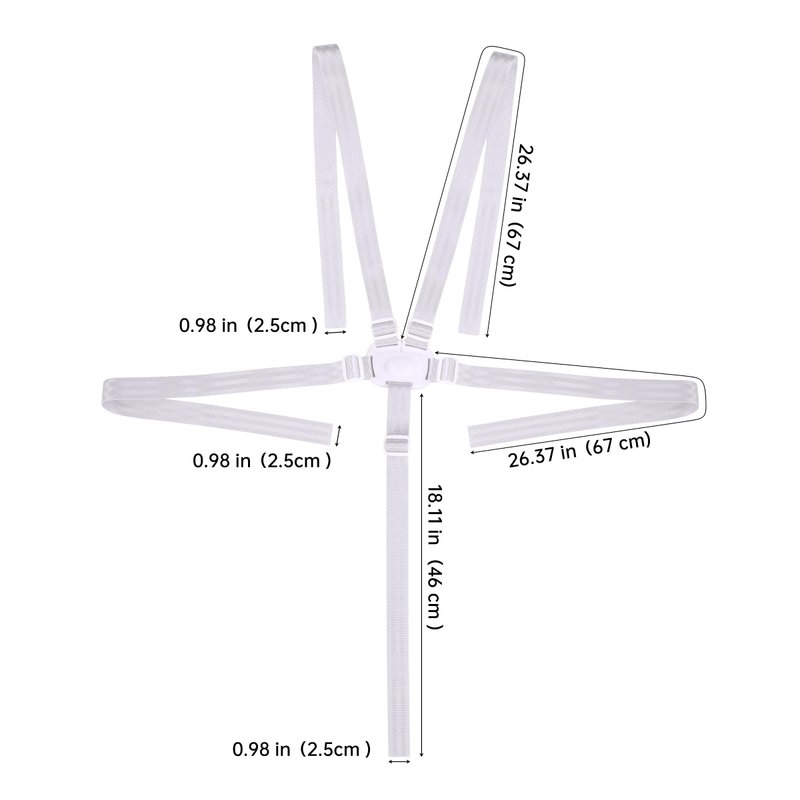 - DIMENSIONS: The high chair harness is 26.37 inches long and 0.98 inches wide; both side straps are 22.04 inches long and 0.98 inches wide; the lower harness is 18.11 inches long and 0.98 inches wide; product weight: 120g