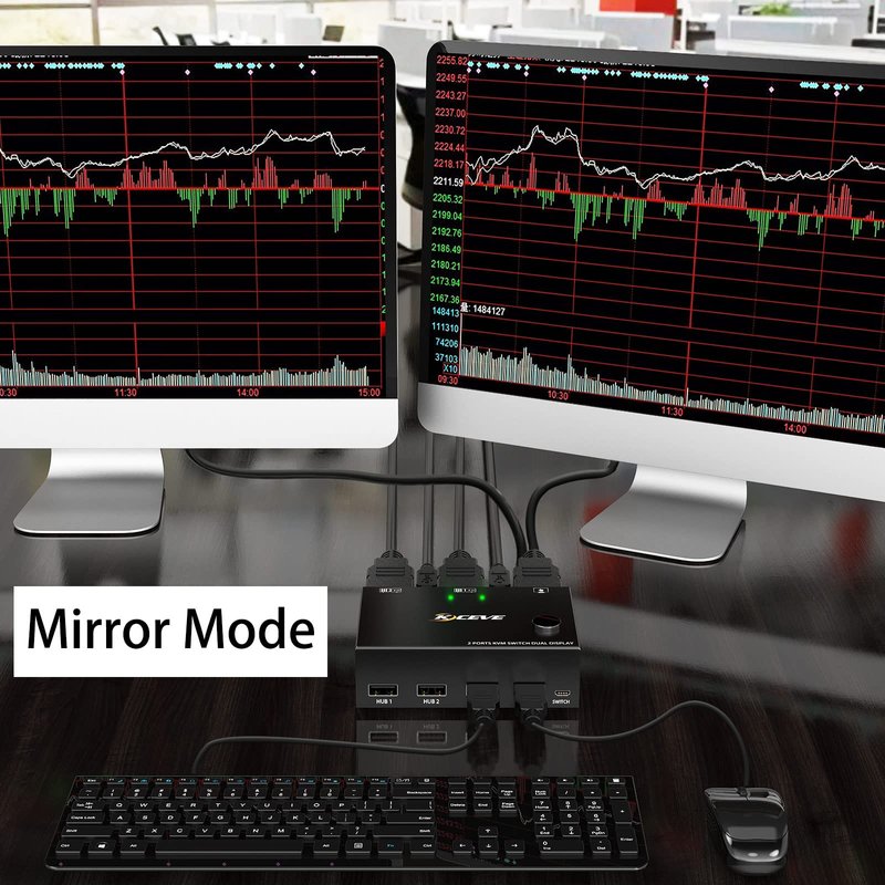 - 【KVM Switch Dual Monitor HDMI 2 Port】This Dual Monitor KVM switcher 2 monitors 2 computers allow you to control 2 PCs by only one set of keyboard & mouse,share 4 USB devices and 2 monitors(Extend display mode or copy display mode). Please note that the extended mode can output two different screens, and the copy mode can output two identical screens.