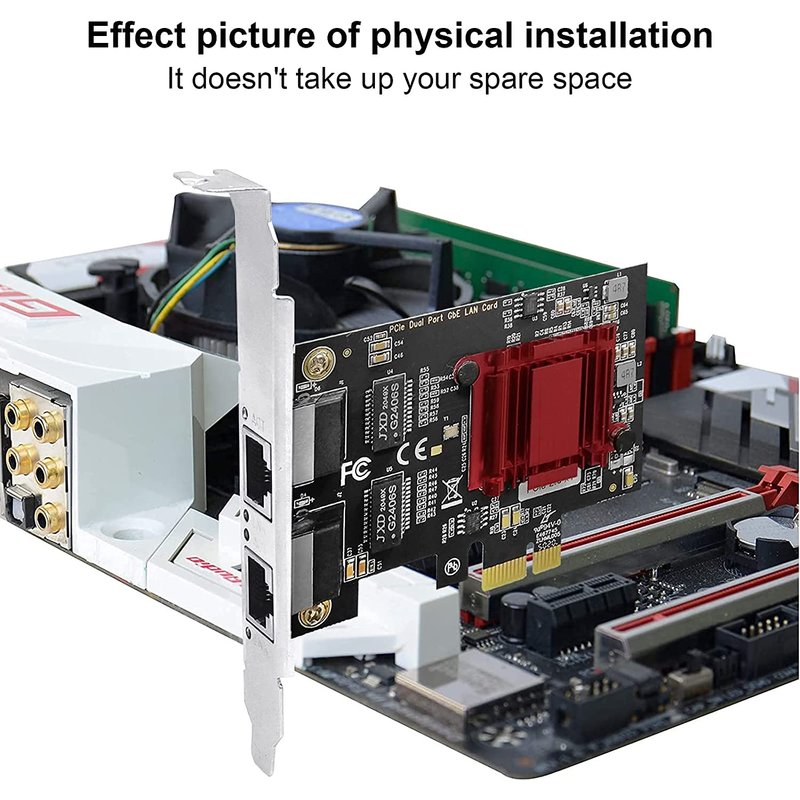 Dual-Port PCIe Gigabit Network Card 1000M PCI Express Ethernet Adapter with Intel 82575/82576 Two Ports LAN NIC Card for Support PXE for Windows/Windows Server/Linux/Freebsd/DOS with Low Profile