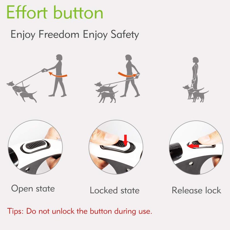 - NON-SLIP HANDLE IS EASY TO OPERATE: The handle of the automatic telescopic leash is made of a solid and non-slip material, and the button can be used to lock the leash to control the pet's activity space. The button is easy to operate, but be careful not to unlock the button during use, the leash will automatically retract to avoid pet injury.