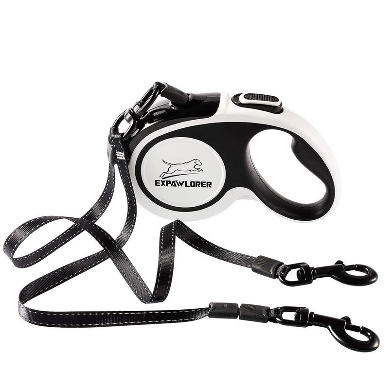 Dual Dog Retractable Leashes 16ft Double-Head Lockable Leash Connect collar harness 360 Swivel No Tangle for Two Dogs Walking Training, Black and White