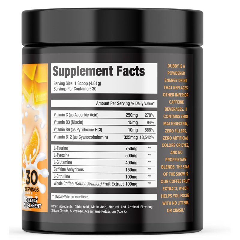 Dubby - Gamer Energy Drink Powder for Gaming - Sugar Free Energy Drinks, Nootropics Jitter-Free Natural Energy Powder, Mango Orange Cream Flavor, 30 Serving, 5.61 Ounces (Cali Cream)