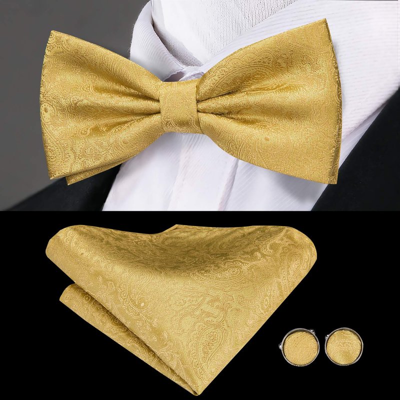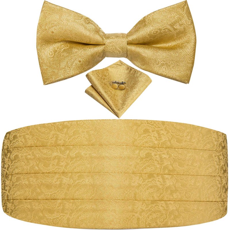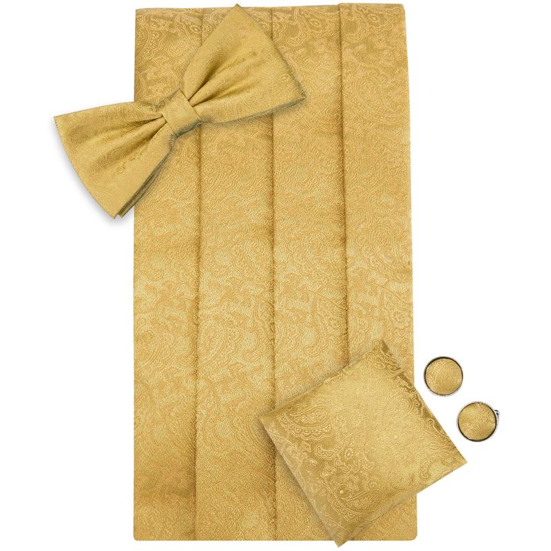 Dubulle Gold Paisley Cummerbund and Bowtie for Men Gold Bow Tie and Pocket Square