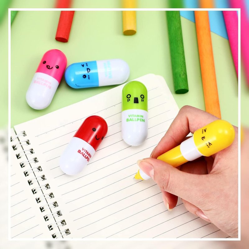 - 【Capsule Pens Party Favors Toys】Including 36 pens in each pack, and each pack has 6 different colors, Each color has a cute face on it which kind of makes it a personalized gift.
