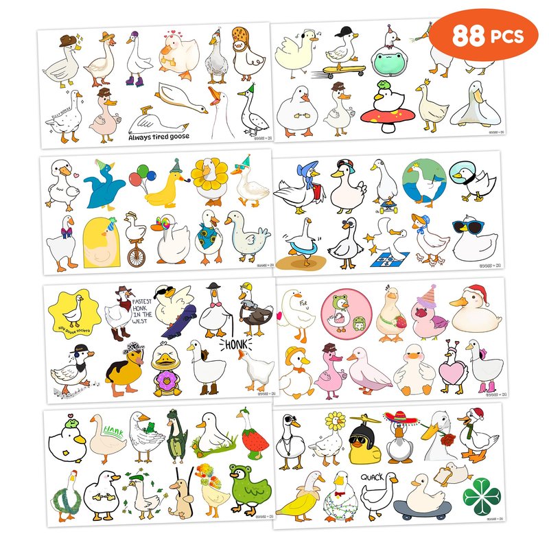 Duck Temporary Tattoos 8 Sheets 88 PCS Silly Goose Party Decorations Supplies Favors Duck Geese Animals Theme Birthday Cute Stickers Christmas Gifts for Boys Girls Kids Class School Prizes Carnival