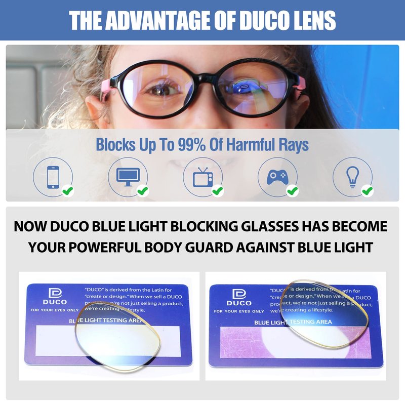 - đăSuitable For Multi Occasionsă-- DUCO kids blue light blocking glasses has more color options which are perfect for reading books, watching TV, playing computer games, playing cell phone and other indoor activities. Enjoy life, grow up healthy.
