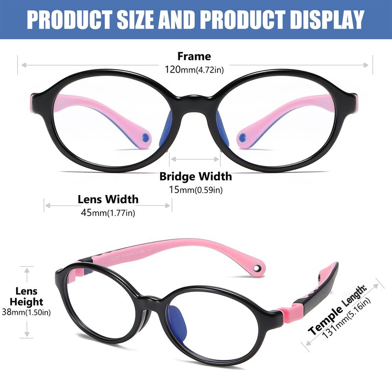 - đăBLUE LIGHT GLASSES FOR KIDSă-- Children's eyes are more fragile and vulnerable to blue light than adults' eyes.Our kids blue light glasses have blue coating lenses, which can effectively block the blue light from the electronic screen.Offer superior protection for kids from harmful blue light.