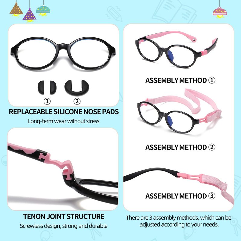 - đăCUTE FASHIONABLE FRAMESă-- TR90 composite frame offers superior lightweight, impact resistance, temperature resistance, wearing comfort, and aesthetic pleasant. Your kids will love wearing these cool protective glasses for digital time and also as a fashion statement.