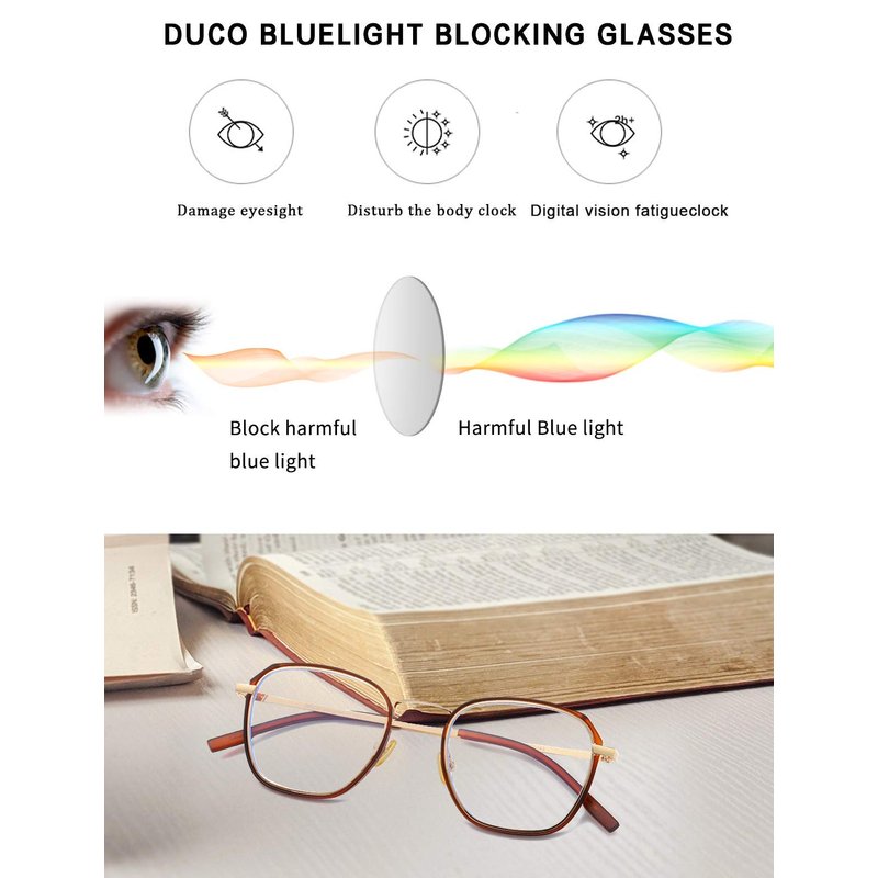 - ✨【Sleep Better】 Prolonged exposure to blue light will slow or stop the production of melatonin, which causes sleep disorders. DUCO Blue Light Glasses can protect you and provide you with a better night's sleep.