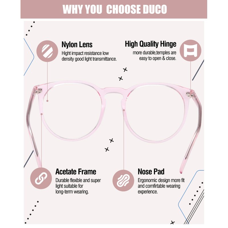 DUCO Retro Round Blue Light Glasses For Men Women Blue Ray Blocking Glasses Computer Gaming Glasses Nylon Lens Acetate Frame Pink 8301