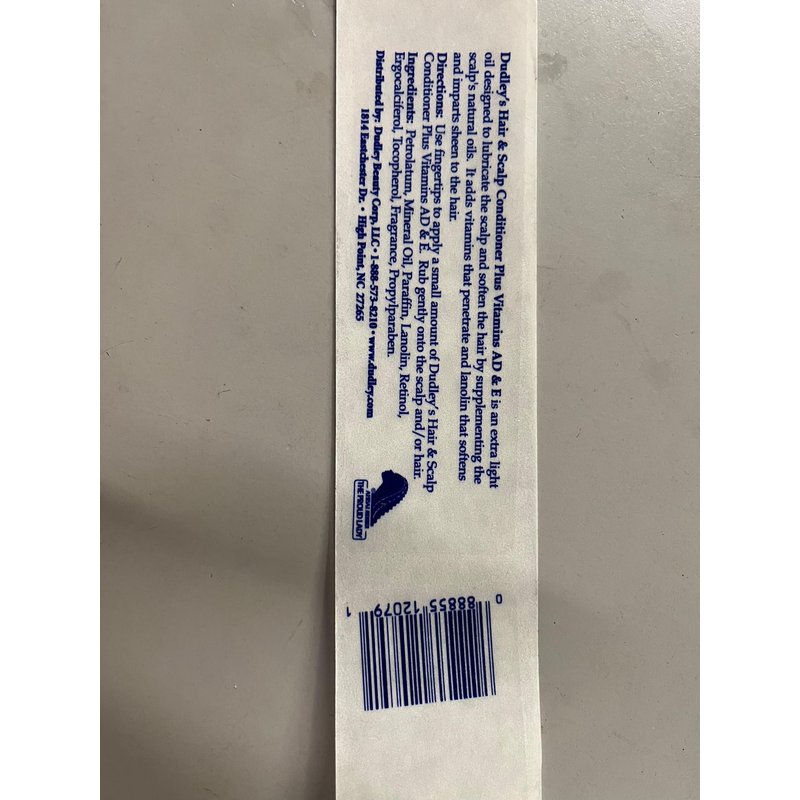 Dudley’s Hair & Scalp Conditioner plus Vitamins AD&E is an extra light oil designed to lubricate the scalp and soften the hair by supplementing the scalp’s natural oils. Vitamin A is necessary for healthy oil production of the scalp. Vitamin D works as a nutrient, and Vitamin E protects the hair from oxygen-stealing free radicals like cigarette smoke and air pollution.
