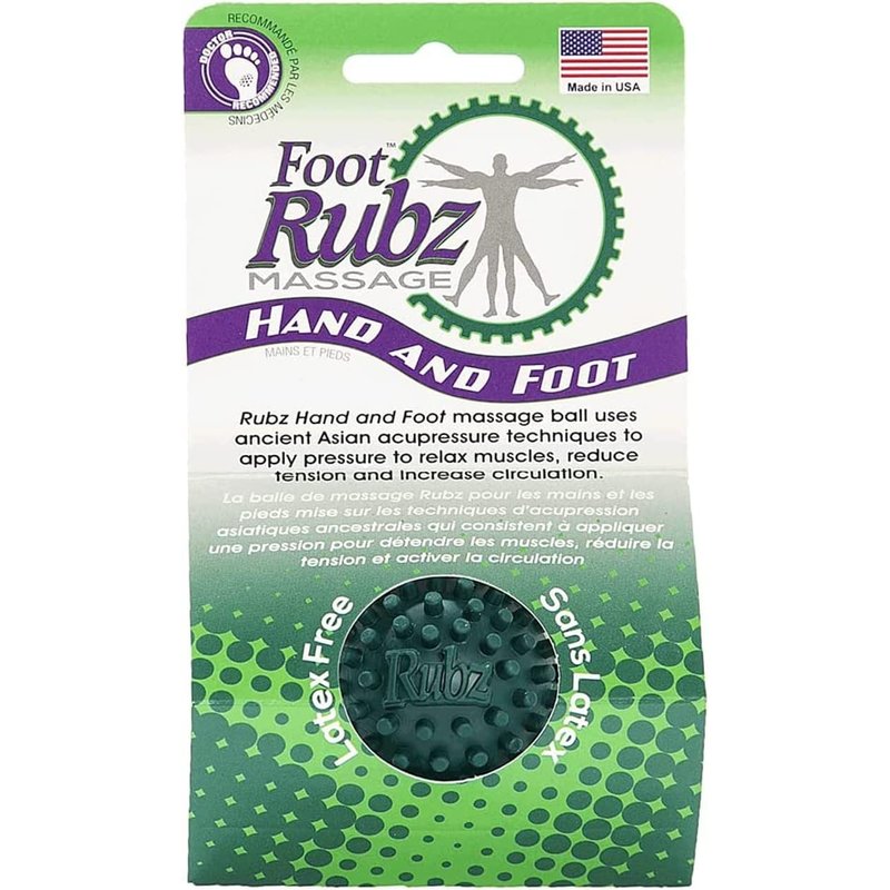 - Relieve Pain: The Rubz Green Massage Ball can be used on trouble spots on hands, feet, and other trigger points to reduce tension, relax muscles and increase circulation. The spiky ball can be used to relieve Plantar Fasciitis symptoms, break up fascia, or relieve tight and sore muscles.