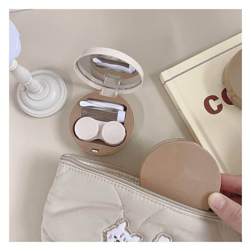 Duehut HLLMX 2 PCS Contact Lens Case Travel Case Holder Storage Box Portable Contact Lens Container Soak Kit for Travel&Home (White,Khaki)