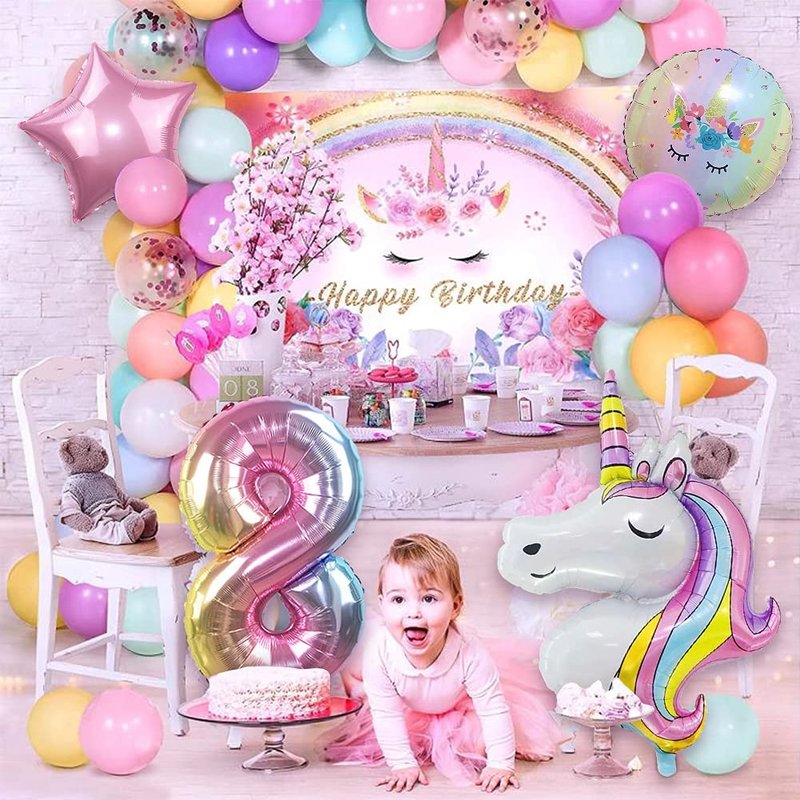 - Cute Unicorn Balloon Party decor for Birthday:Make your baby’s birthday party or baby shower magical and colorful! This unicorn baloons for girls comes with different variety of design and style perfect for your fabulous celebrations. Turn your party place into a whole new magical world with these stunning pastel unicorn mylar balloons party decorations supplies