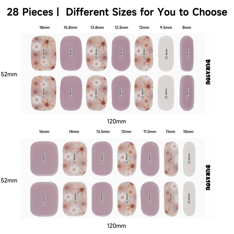DUKASOU 28pcs Semi Cured Gel Nail Strips, Gel Nail Stickers Kit Work with Any UV Nail Lamps, Long Lasting Gel Nail Wraps for Girl Women, includes Prep Pads, Nail File & Wood Stick(Purple Flower)