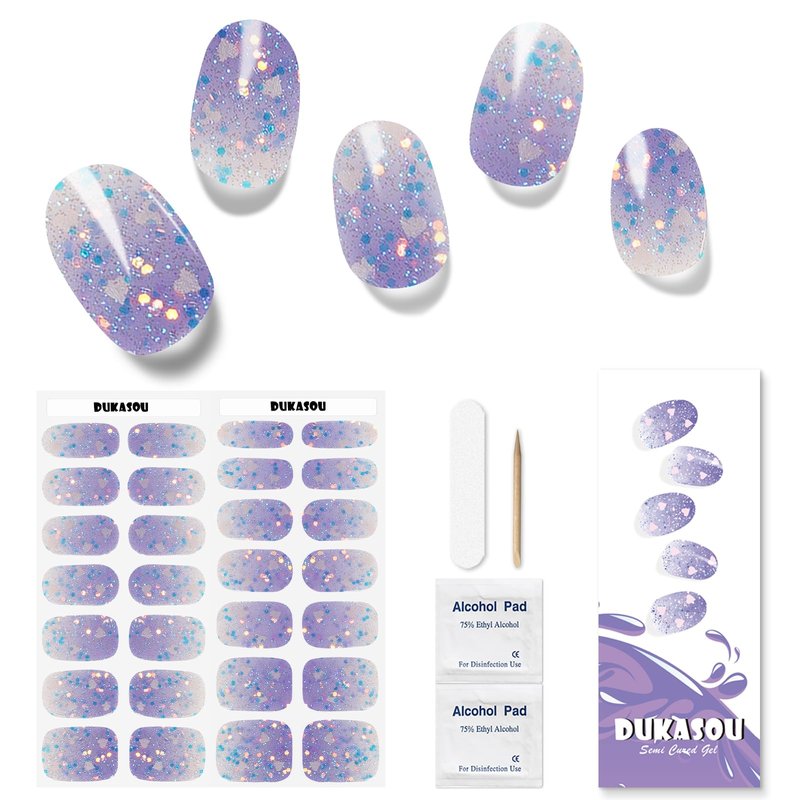 "GEL Nail Art Stickers SET-DUKASOU semi cured gel nail strips package contains 26 easy-to-use gel nail polish wraps in different sizes. The gel nail strips also comes with 2 prep pads, 1 nail file(trimming the edge), and 1 wooden stick (pressing the edge and removing). Our gel nail art stickers is suitable for all types of nail sizes and shapes. It can be used whether your nails are round or square. Material &advantages introduction-Our gel nail strips are pre-cured 60%, nail stickers for nail art is made of real gel nail polish, with elasticity and luster, light and comfortable to wear, durable, can last for two Week, non-toxic, harmless, safe and odorless;Also,say goodbye to expensive nail salons, you can save money and time with DUKASOU DIY gel nail strips. Make a pair of hands in one minute-DIY nail strips making operation is simple, you only need to spend one minute to stick the gel nail sticker on the nail, (Tips:After the gel manicure stickers are applied to the nails, it is recommended to apply a layer of reinforcing sealer in the baking lamp, so that it can be a more solid manicure.) The nail polish stickers cover is also easy to peel off, just lift the gel nail sticker with the tip of the wooden stick included in the package. Suit Your Personal Style And Venue-We have a variety of gel nail designs and different color styles, aiming to provide nails that are suitable for everyone, meet the needs of fashionable women or girls, suitable for dating, shopping, friends gathering, wedding, gift giving, birthday party, Christmas or just DIY decoration at home. Show off your beauty and self-confidence ! Whether it's dashing diva gel nail strips, or french tip nails, from dazzling glitter to embre/gradient, we all have! DUKASOU Guaranteed-DUKASOU provide pre-sales and after-sales service.If you encounter any problems with DUKASOU gel nail strips products, please feel free to contact us through ""contact sellers"", and we will solve the problem for you.Customer satisfaction is what DUKASOU insist on doing!"