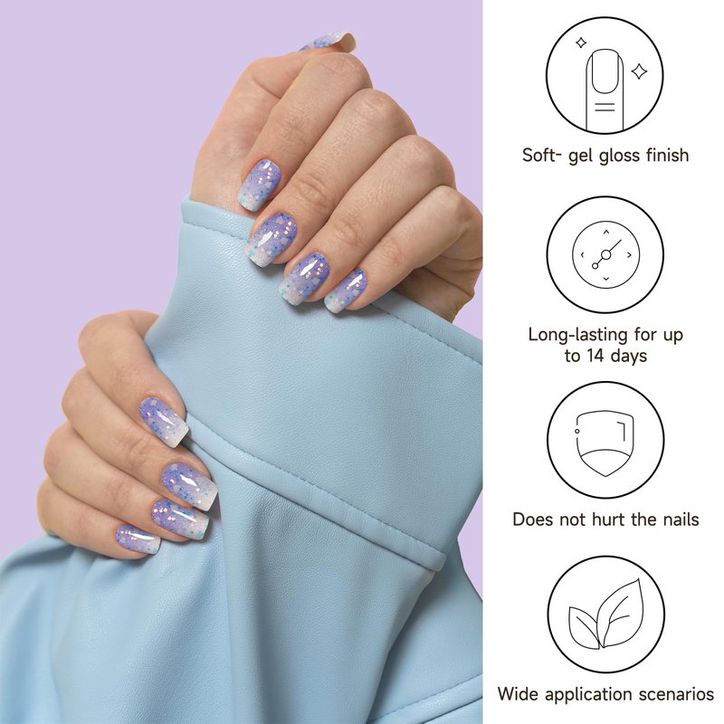 - Suit Your Personal Style And Venue-We have a variety of gel nail designs and different color styles, aiming to provide nails that are suitable for everyone, meet the needs of fashionable women or girls, suitable for dating, shopping, friends gathering, wedding, gift giving, birthday party, Christmas or just DIY decoration at home. Show off your beauty and self-confidence ! Whether it's dashing diva gel nail strips, or french tip nails, from dazzling glitter to embre/gradient, we all have!