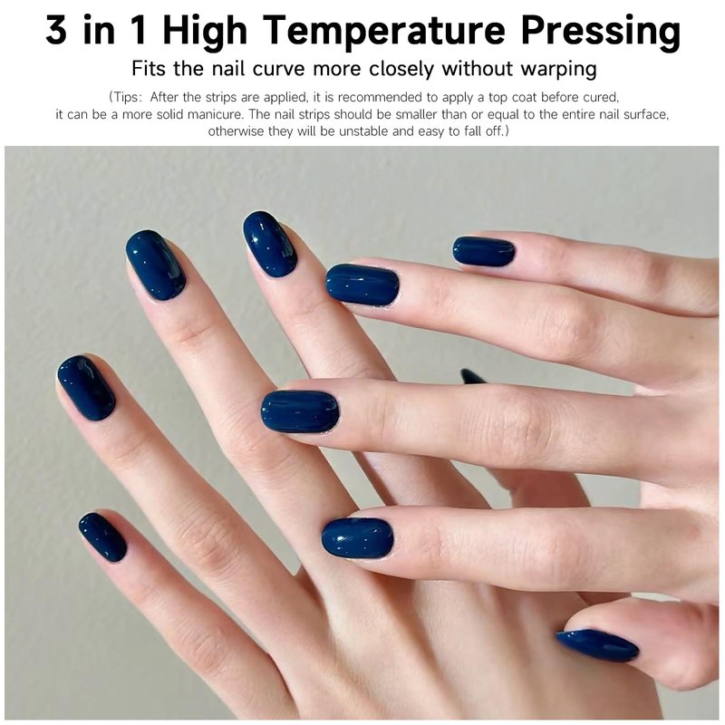 - Make a pair of hands in one minute-DIY nail strips making operation is simple, you only need to spend one minute to stick the gel nail sticker on the nail, (Tips:After the gel manicure stickers are applied to the nails, it is recommended to apply a layer of reinforcing sealer in the baking lamp, so that it can be a more solid manicure.) The nail polish stickers cover is also easy to peel off, just lift the gel nail sticker with the tip of the wooden stick included in the package.