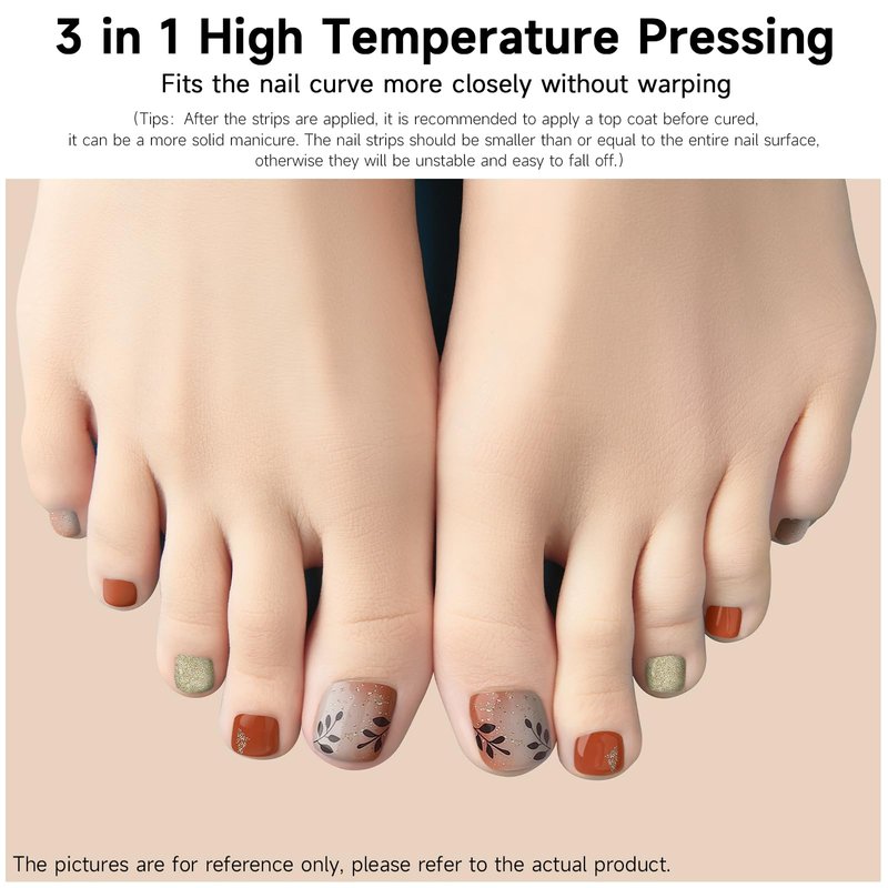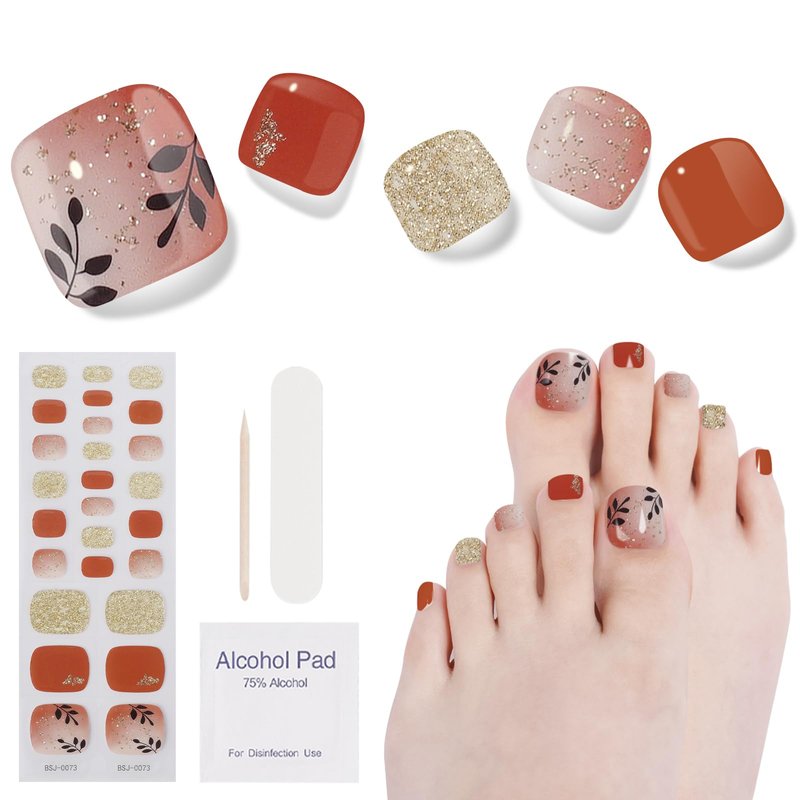 DUKASOU Semi Cured Gel Pedicure Strips, (Romantic Autumn)26 PCS Gel Nail Strips Works with Any UV Light, Salon Quality Gel Nail Stickers,Easy to Apply & Remove