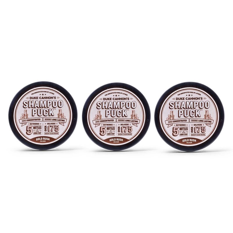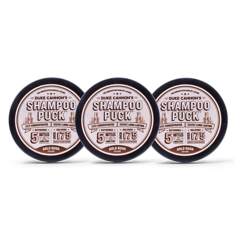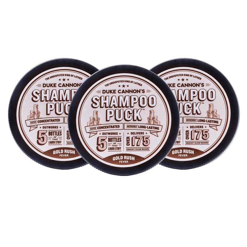 Duke Cannon Supply Co. Shampoo Puck for Men Gold Rush Fever Multi-Pack - Eco Friendly, Plastic Free, Solid Shampoo, Super Concentrated, Long-Lasting, TSA Approved Tin, Sulfate-free, 4.5 oz (3 Pack)