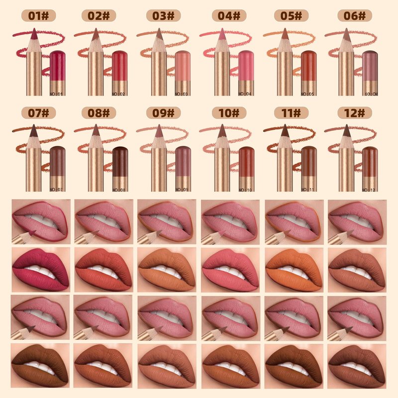 1.12 popular colors available. This lip liner is matte and smooth creamy texture. Accurately outline the lips and create exquisite lip makeup;