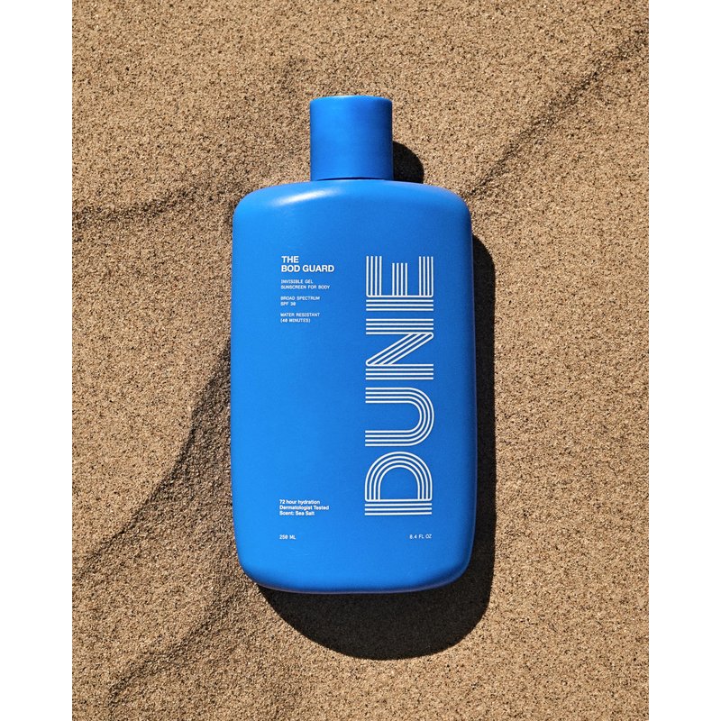 - Dune Bod Guard Sunscreen: SPF 30 broad spectrum protection sunscreen protects skin’s appearance from the harsh sun with this refreshing sea salt scented sunscreen gel. Water resistant up to 40 minutes, we've infused this daily moisturizer with with a delightful dash of hibiscus fruit extract for that extra glow while keeping wrinkles and fine lines at bay.