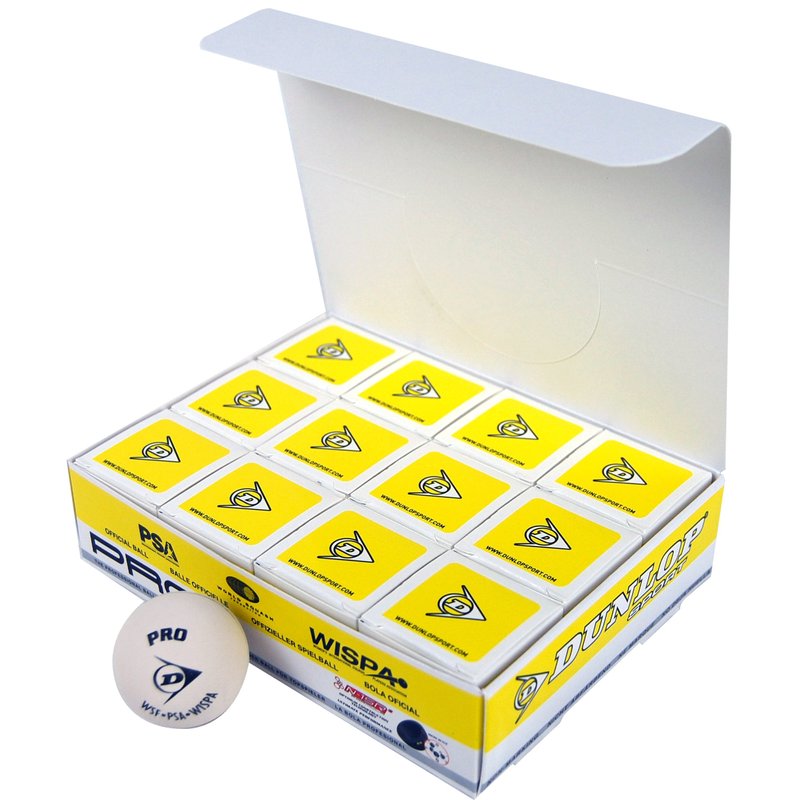 Dunlop Sports Pro Glass Court Squash Ball (White, Pack of 12)