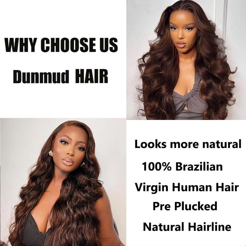 Dunmud 26 Inch Chocolate Brown Lace Front Wigs Human Hair for Black Women Pre Plucked Glueless Wigs Human Hair 13x4 Body Wave Brown Lace Frontal Wig Human Hair Wigs 180% Density