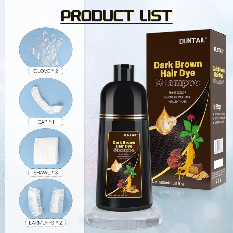 DUNTAIL Instant Gray Hair Color Shampoo 500ML - 3 in 1 Men's & Women's Long-Lasting, Safe Hair Dye (New Upgrade)
