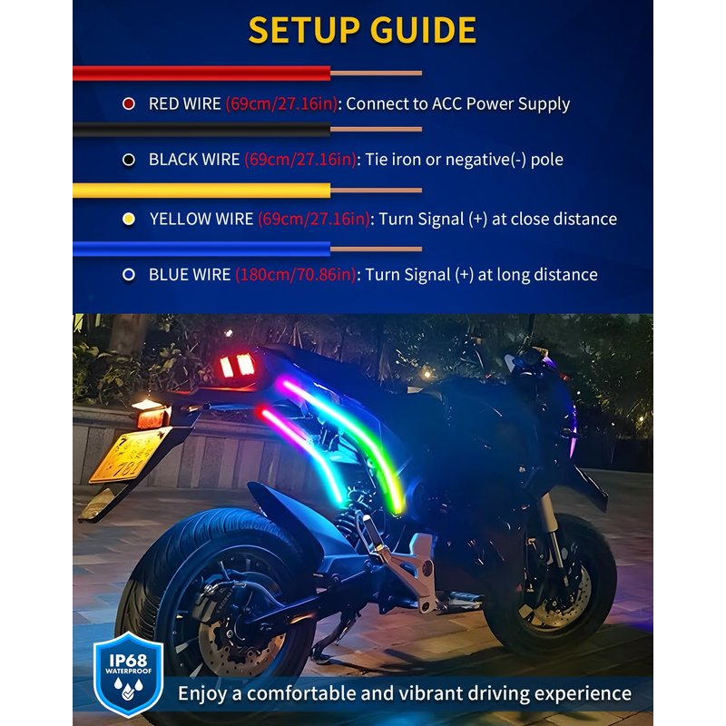 RGB DRL LED STRIP LIGHT is made of soft silicone, flexible, 24 inch in length, easy to be bent or cut to fit into your headlight retrofit.last long time. The turn signal led strip lights with strong 3M adhesive on the back, it can be installed without removing the car, simply splice into your current DRL and turn signal wiring.no disassemble or no drilling is needed. our LED DRL Strips universally fit for most DC12V auto vehicle decoration, such as Cars, SUVs, RV, Vans, Trucks, Scooters, Trailers, Motorcycles etc.