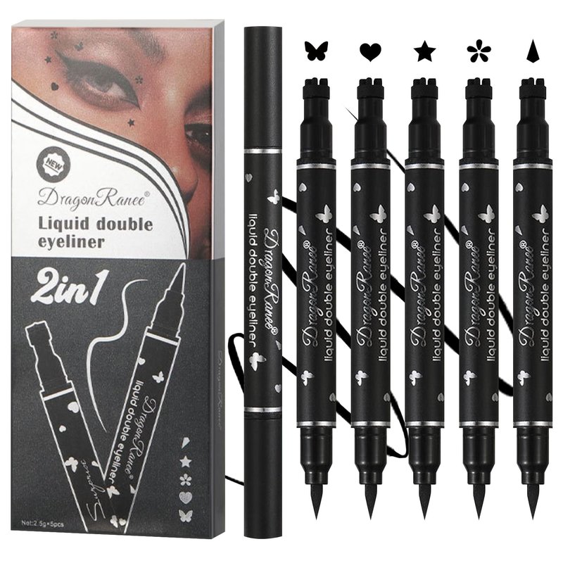 💕The eyeliner stamps set features a dual-ended design with a soft-touch tip, rich, long-lasting color, waterproof and smudge-proof, and five different stamps for you to choose from. You can use the soft and delicate eyeliner to precisely draw a glamorous eyeliner, or use the other side of the stamps to create a cute and dynamic eye makeup look.
