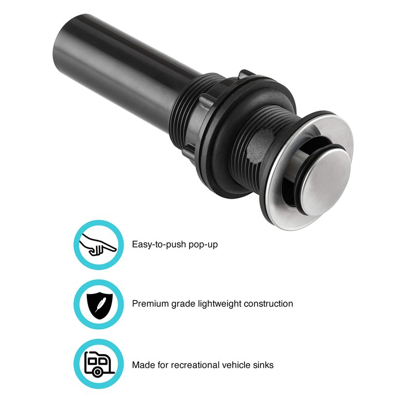 - Design | This drain stopper works with standard sink sizes found in recreational vehicles. We carry several finishes to match your current hardware so matching is easy