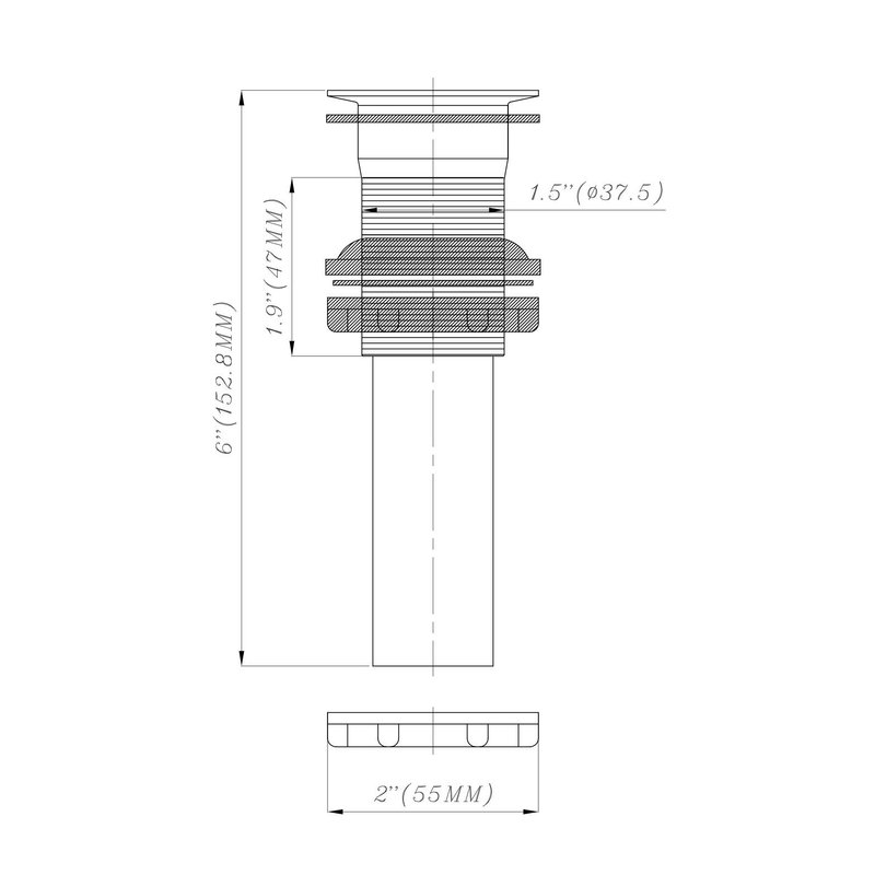 - Specifications | Total width is 2”, and height is 6”. Includes a removable stopper. Need more than the pop-up? We also carry pop-ups with overflow and lift rod assemblies. Dura Faucet is an American company with USA-based Customer Support.