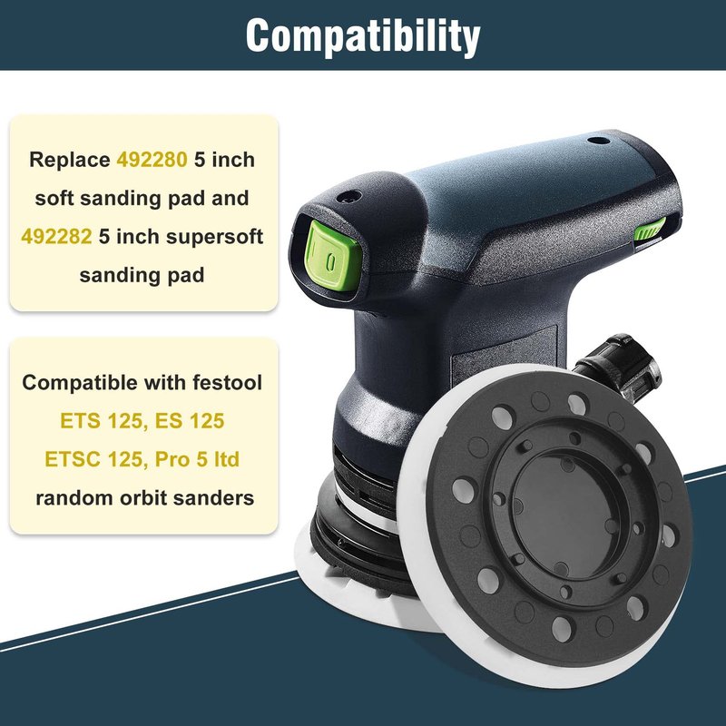 - 【Perfect Compatibility】: 492280 hard sanding pad replace 492280 5 inch soft sanding pad and 492282 5 inch supersoft sanding pad and fit festool ES 125, ETS 125, ETSC 125 & Pro 5 ltd random orbit finish sanders (Model: 574993 576070 201234 etc).