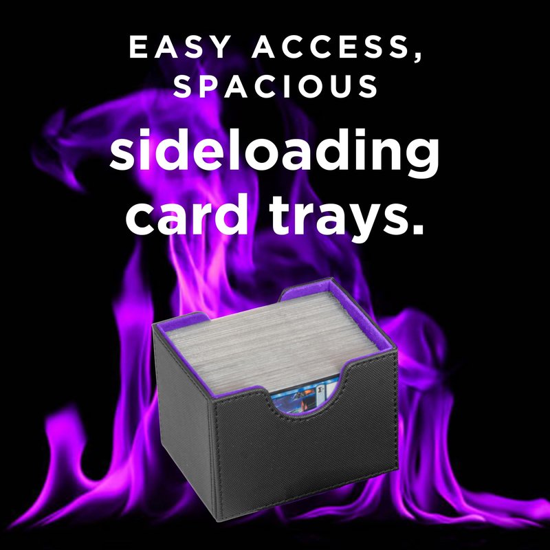 Durable Double Deck Box with Dice Tray - MTG Deck Box Commander Friendly - Protects 200+ Double Sleeved Cards - Designed for MTG Commander Deck Box with Sideloading Card Trays (Purple Fire)
