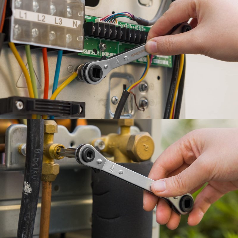 - Service wrench set is an excellent tool with a simple appearance, portable and compact, easy to carry, saves time and effort. It is used for repairing equipment such as air conditioners, heating, refrigerators and compressors. It has a wide range of applications and powerful functions.