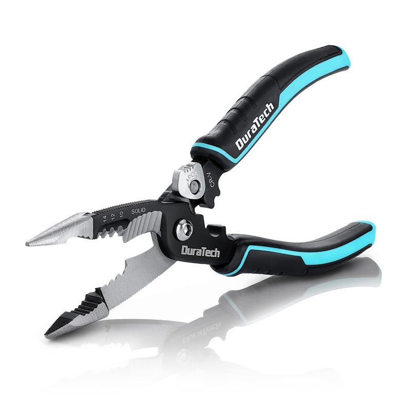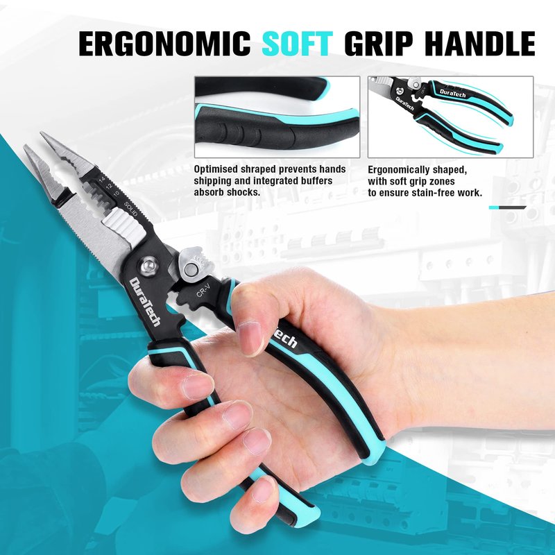 DURATECH 5-in-1 Wire Stripper, 8" Wire Stripper and Crimping Tool, Premium CR-V Construction, Needle Nose Plier, Multifunctional Electrician Pliers for Crimping, Cutting, Stripping, Shearing, Clamping