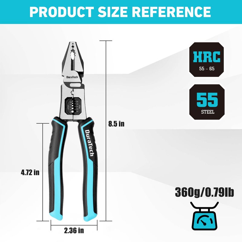 - 【High Hardness and Durable】DURATECH 8.5 inch lineman pliers are made of premium carbon steel, which is integrally heat-treated and forged with a blackened surface to ensure higher hardness, toughness and durability as well as stronger corrosion resistance, anti-corrosion rust.