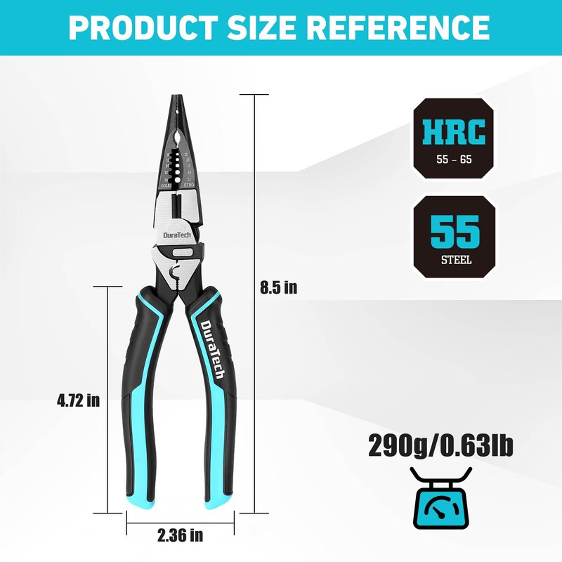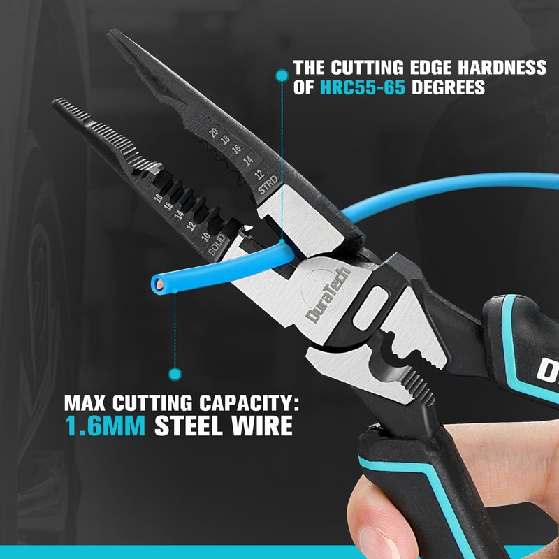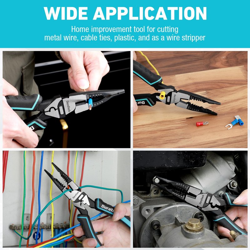 DURATECH 6-in-1 Needle Nose Pliers, 8.5" Multipurpose Long Nose Pliers with Wire Stripper/Crimper/Cutter Function, Heavy Duty Multifunctional Electrician Pliers for Crimping, Stripping, Shearing