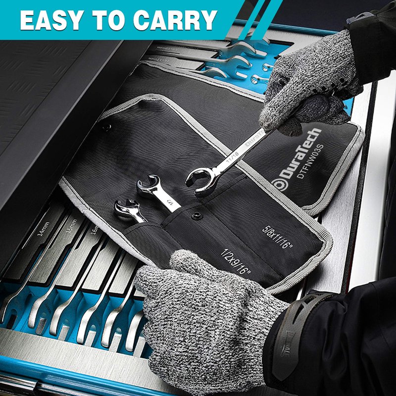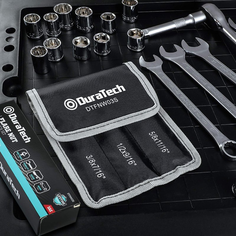 DURATECH Flare Nut Wrench Set, SAE, 3-piece, 3/8'', 7/16'', 1/2'', 9/16'', 5/8'', 11/16'', CR-V Steel, Organizer Pouch Included