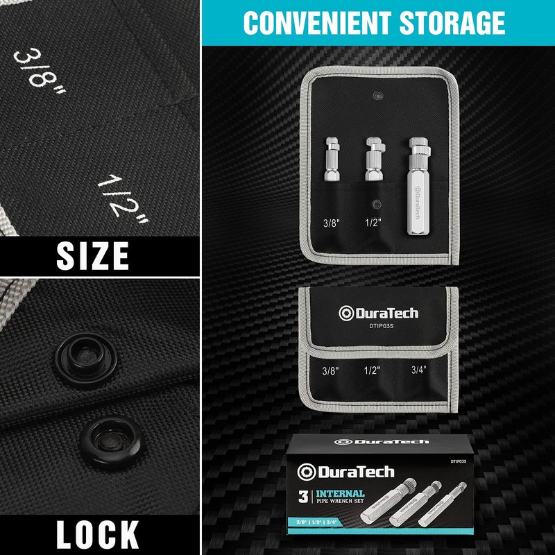 DURATECH Internal Pipe Wrench Set, Pipe Nipple Extractor Set, 3-Piece, 3/8",1/2" and 3/4" Pipe Capacities, Organizer Pouch Included