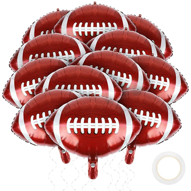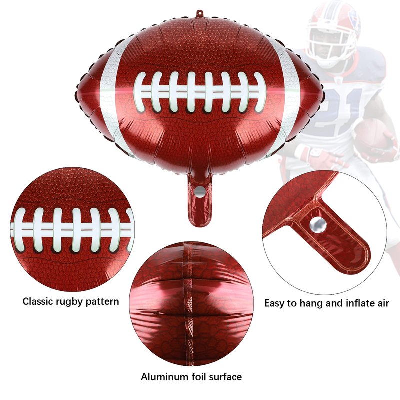 - Quantity: there are 12 packs of rugby aluminum foil balloons, round shape together with the print on the football mylar balloons make the balloons' appearance close to the rugby, delivering a realistic ball feeling to people, we also provide 1 roll of the silver belt for you to use