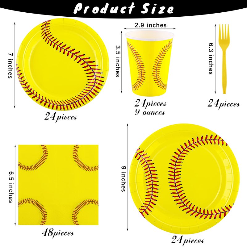 - Exclusive design: softball paper plates and napkins set with yellow as the theme color, printed with softball, unique in design, more interesting to use, to make your party looks fresh and fashionable