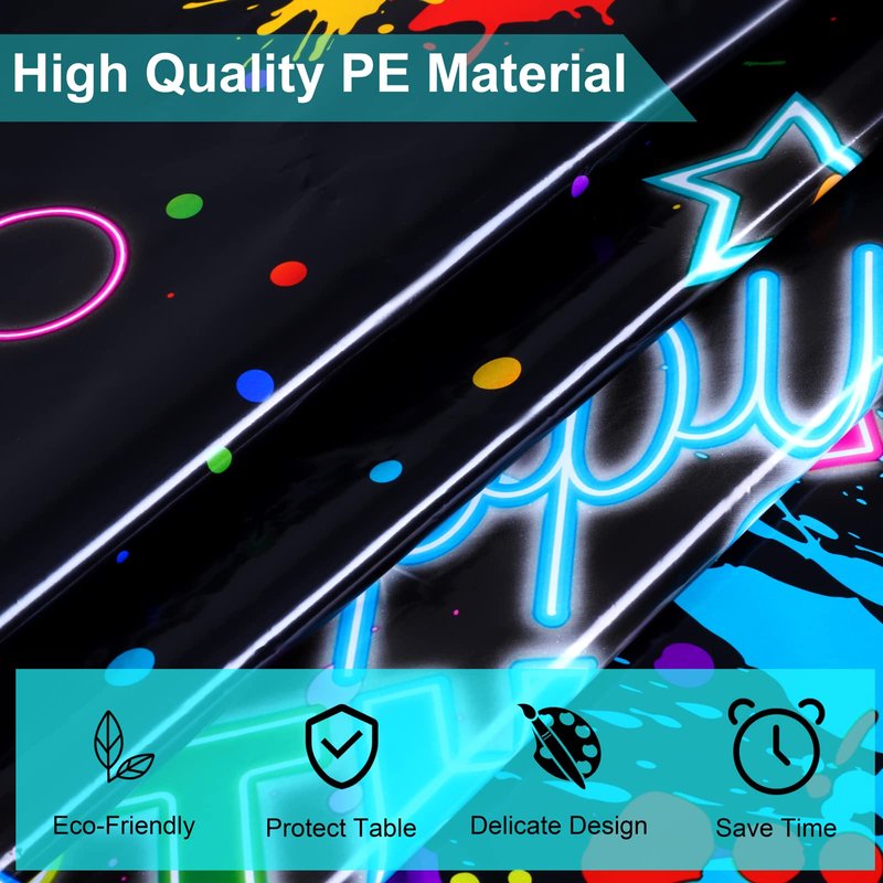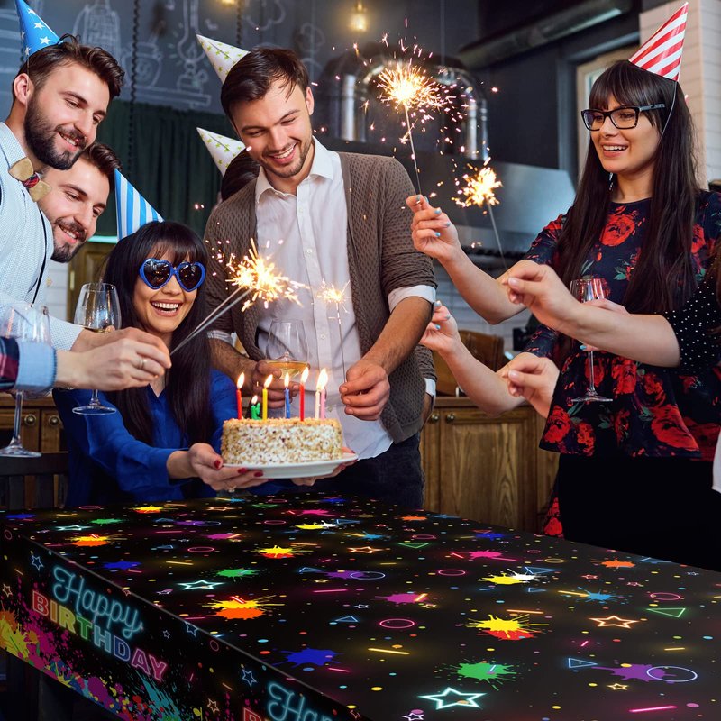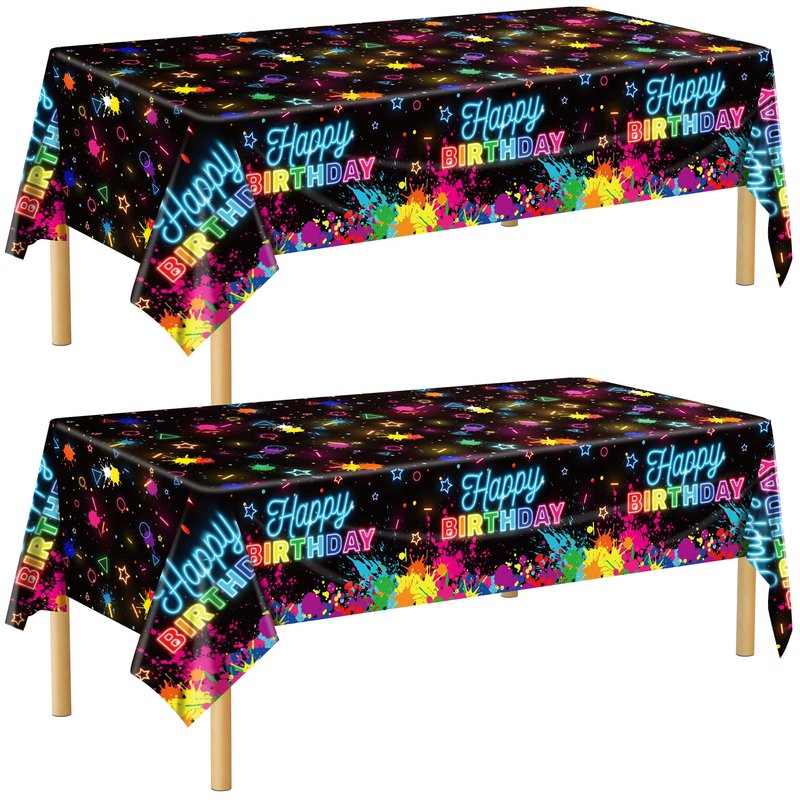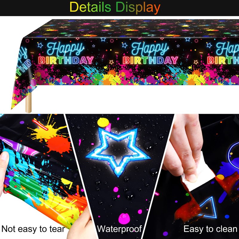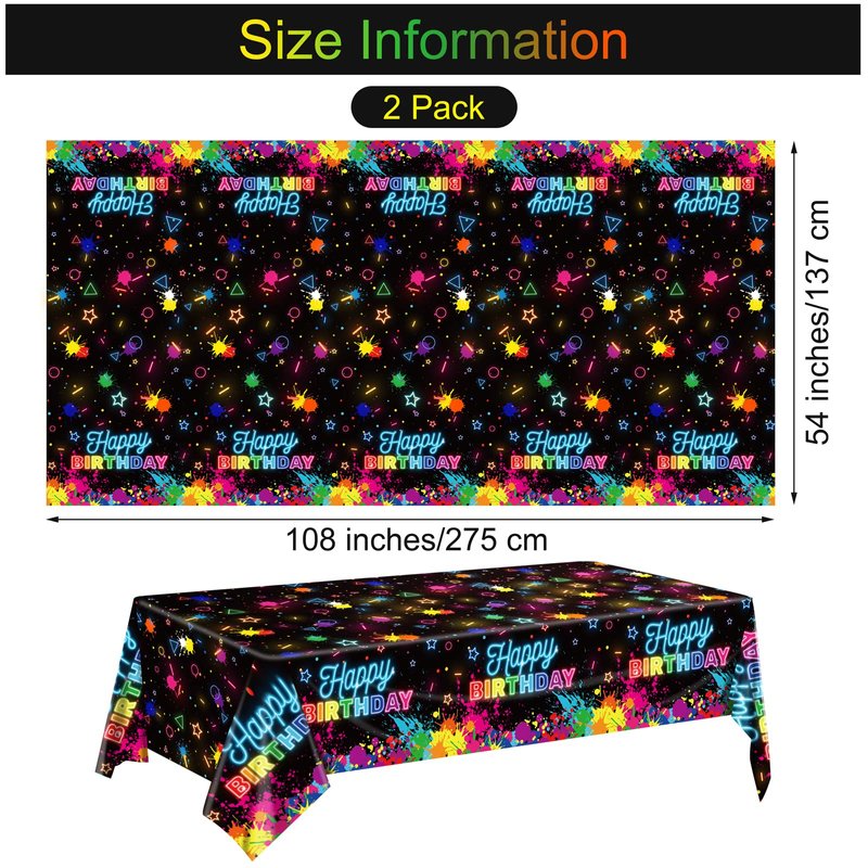 - Widely used: these neon happy birthday tablecloths are great for glow-in-the-dark parties, black light parties, neon birthday parties, weddings and many other indoor and outdoor events. They are attractive table decorations, photographic backgrounds and practical party supplies. Decorating your home and party with our glow table cover which will be a big hit at your party.
