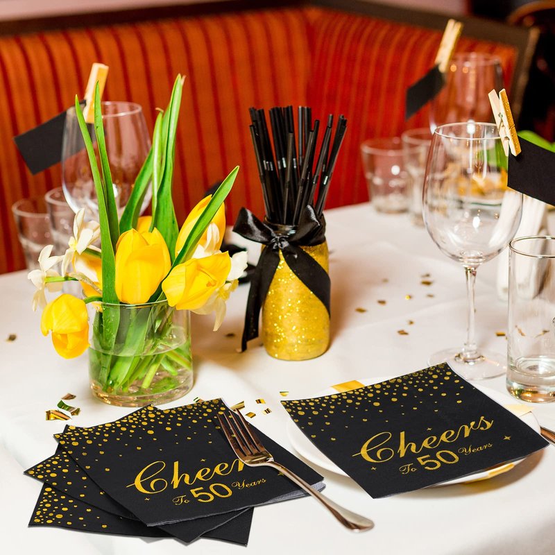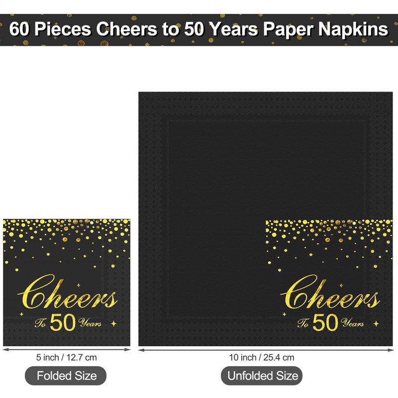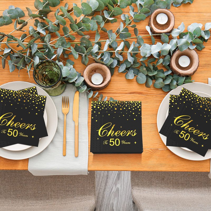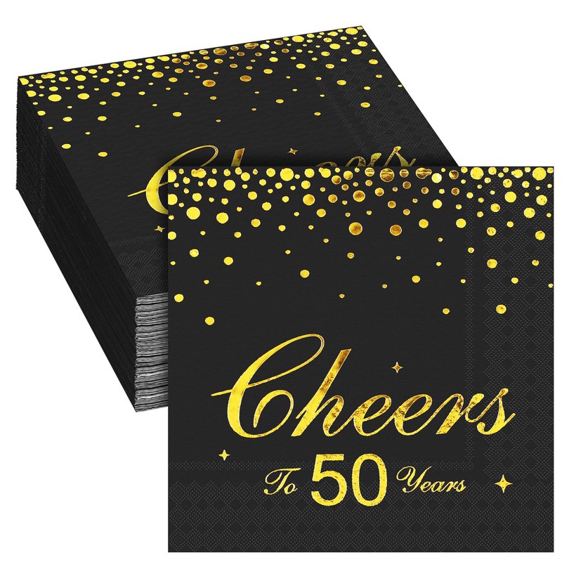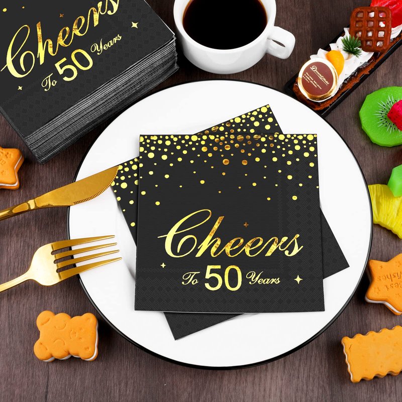 - Unique design: our party napkins are designed with gold foil words "Cheers to 50 Years" on black background, exquisite and elegant; the graceful and modern design of these paper napkins will bring your guests a surprise on formal occasions and activities